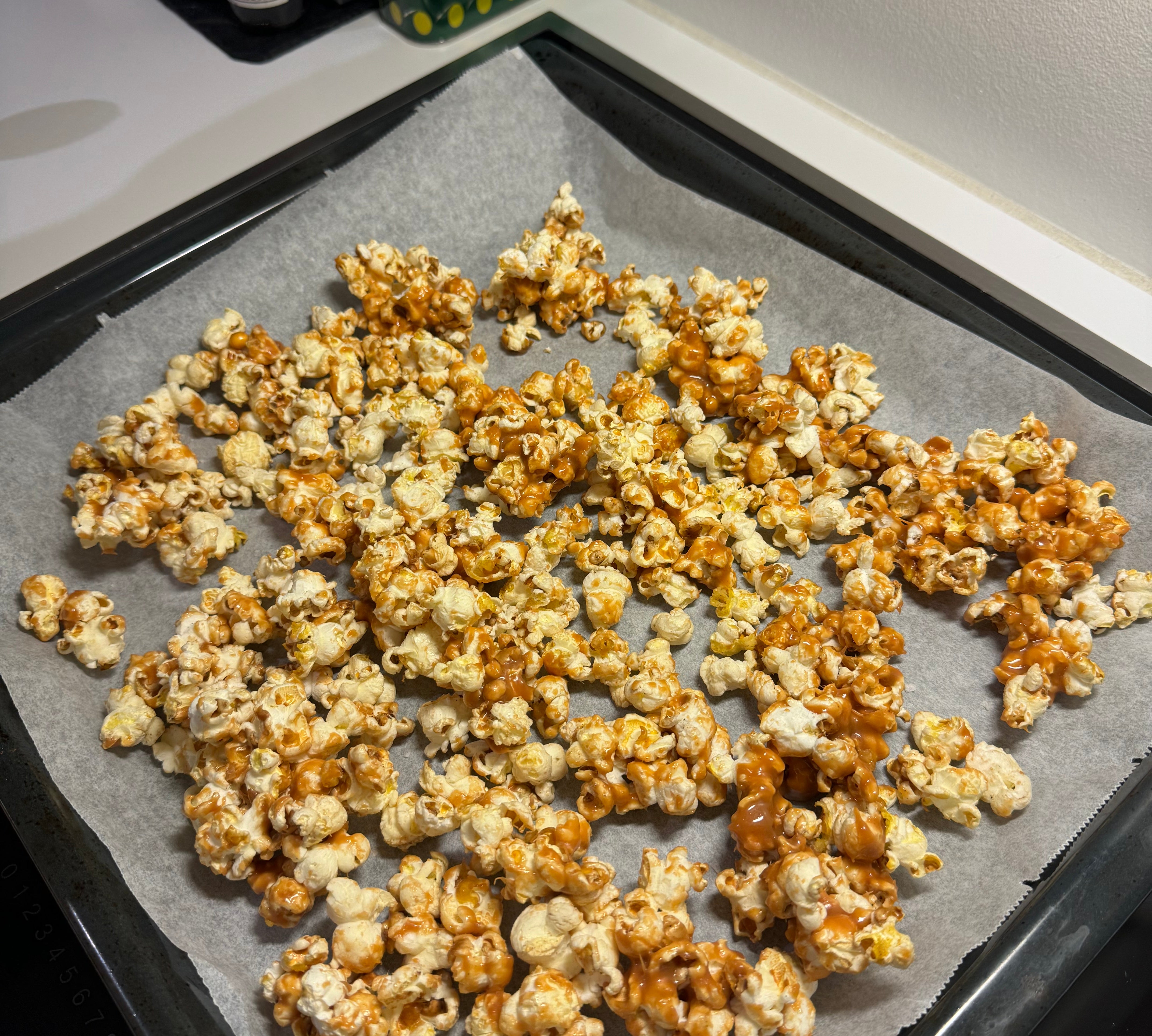Jeg brugte mine kiloposer på at lave karameller med popcorn. Det bløde med det sprøde var så lækkert!