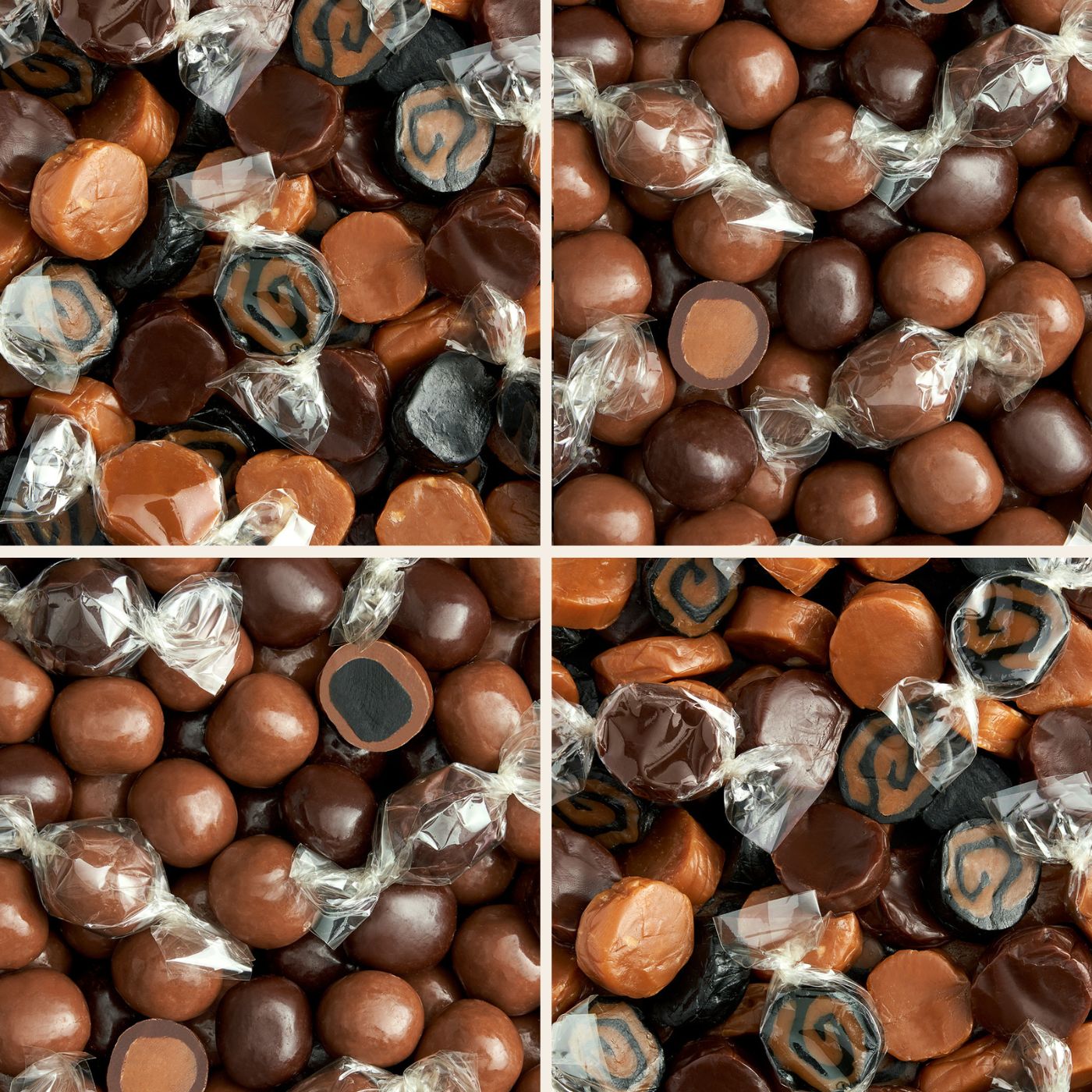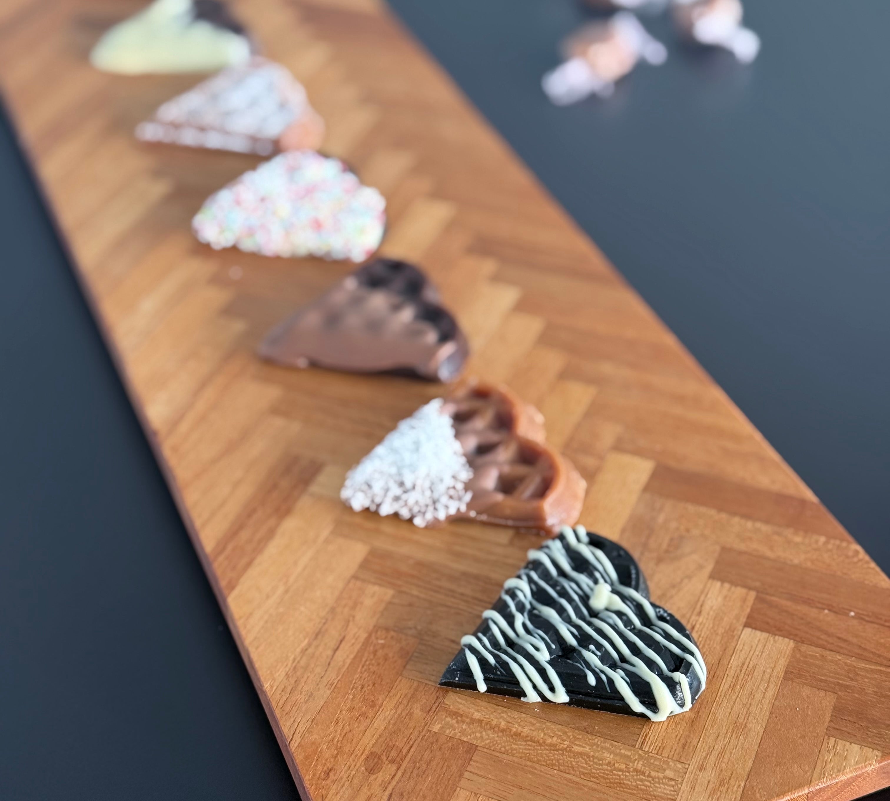 Mine børnebørn og jeg smeltede karamellerne om i et vaffeljern. Derefter pyntede vi dem med chokolade og krymmel. Det tog hele eftermiddagen, men var det hele værd!