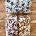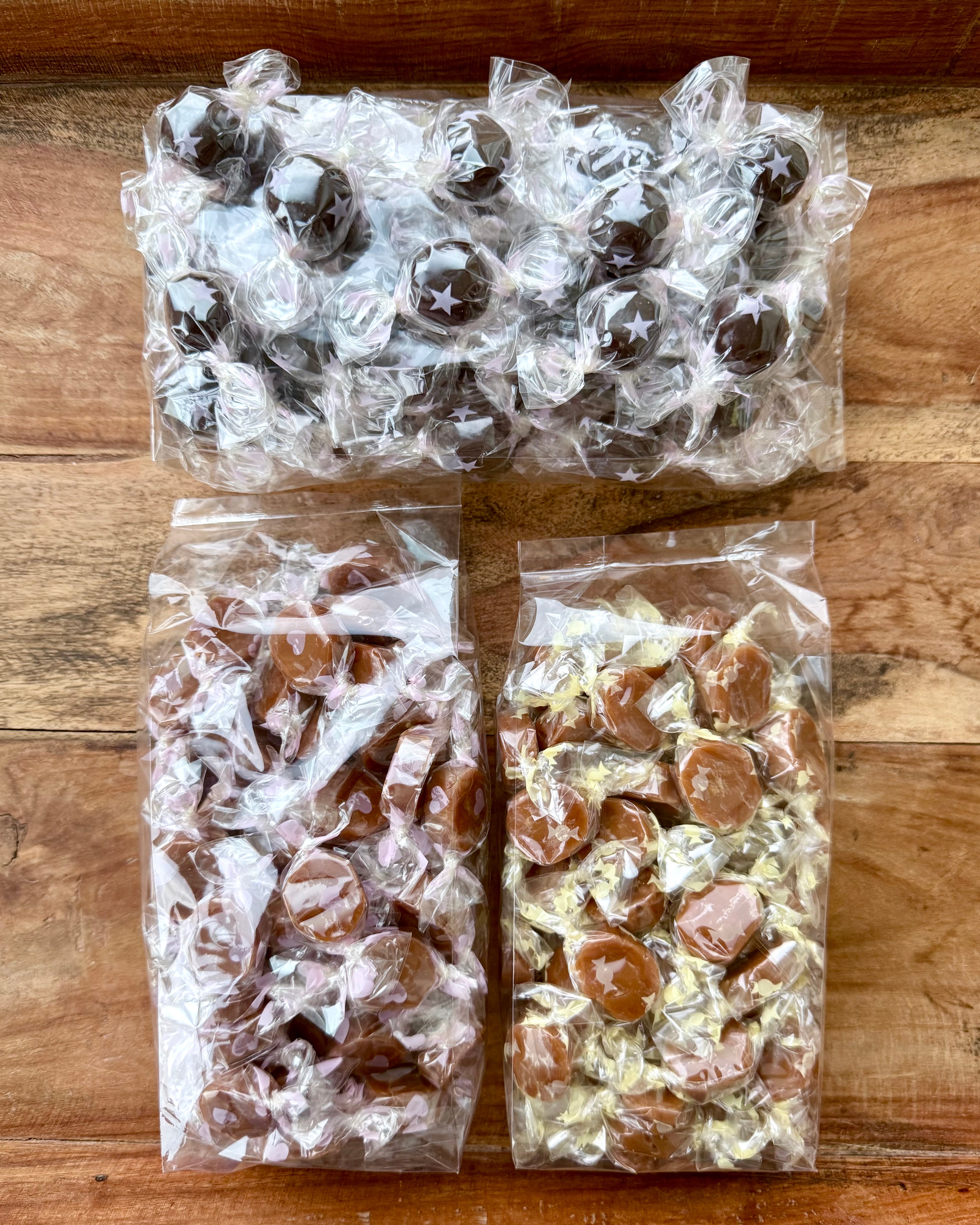 Denne pakke indeholder både karamelkugler og karameller, alt pakket i poser á 300g: