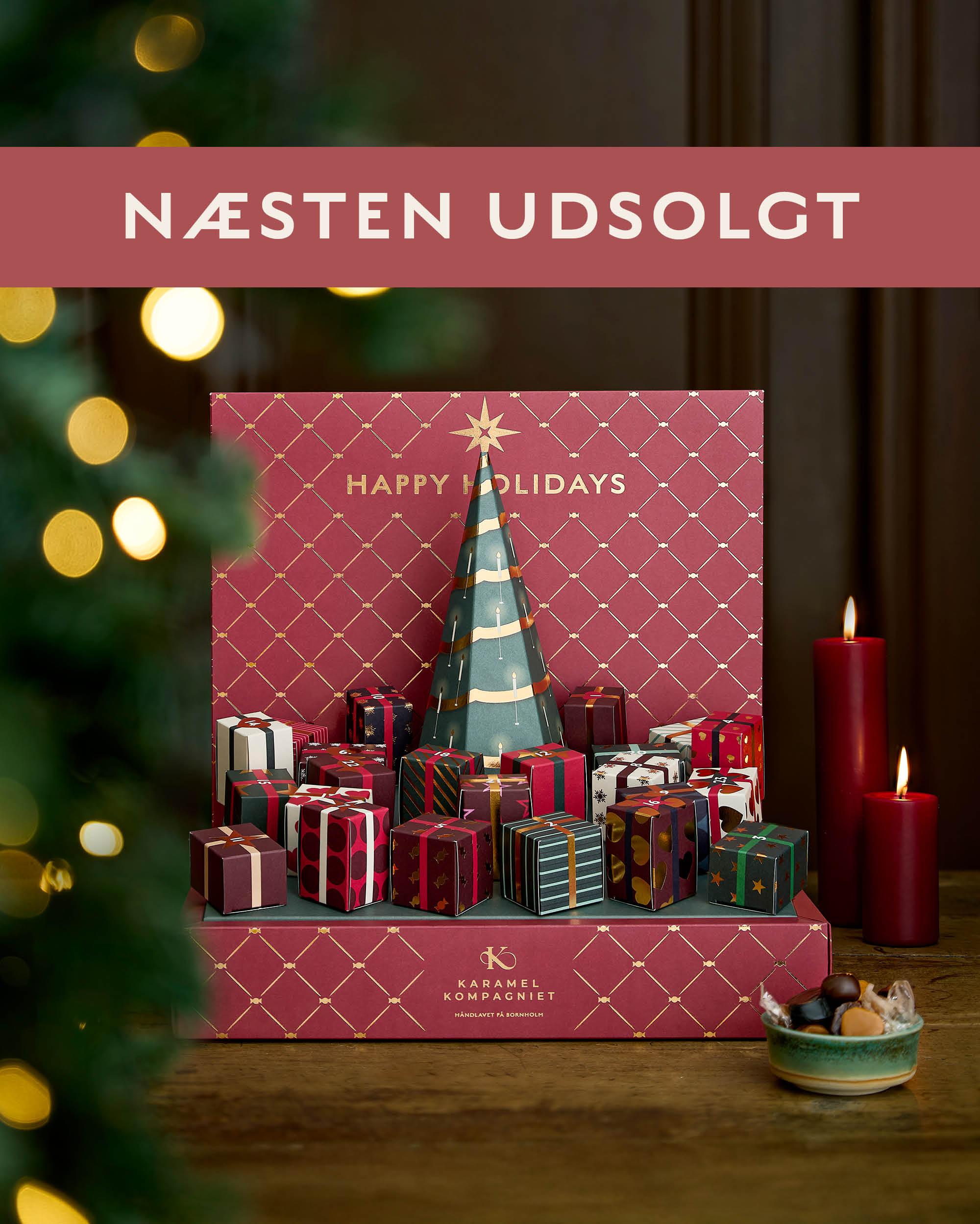 Hver dag i december kan du glæde dig til to delikate, håndlavede karameller, ledsaget af et stemningsfuldt julerim skrevet af Knud Romer. Versene bringer julestemningen helt ind under huden og gør ventetiden til noget særligt.