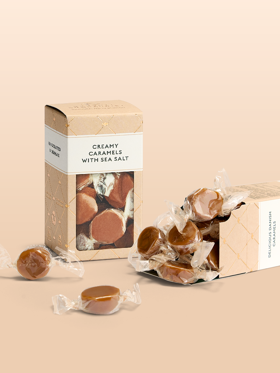 Bløde, håndlavede karameller med en rig og afrundet karamelsmag, balanceret med et fint strejf af havsalt. Fremstillet med omhu og gode råvarer for en ren og klassisk karameloplevelse.