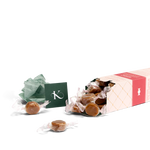 Vores nye æsker er plastikfri, lavet af FSC-certificerede materialer – og så er karamellerne pakket i komposterbart cellofan, med OK Compost Home certifikat. Husk at affaldssortere efter dine lokale muligheder.