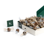 Our new boxes are plastic-free, made from FSC-certified materials – and the caramels are wrapped in compostable cellophane, with OK Compost Home certification. Remember to sort waste according to your local options.