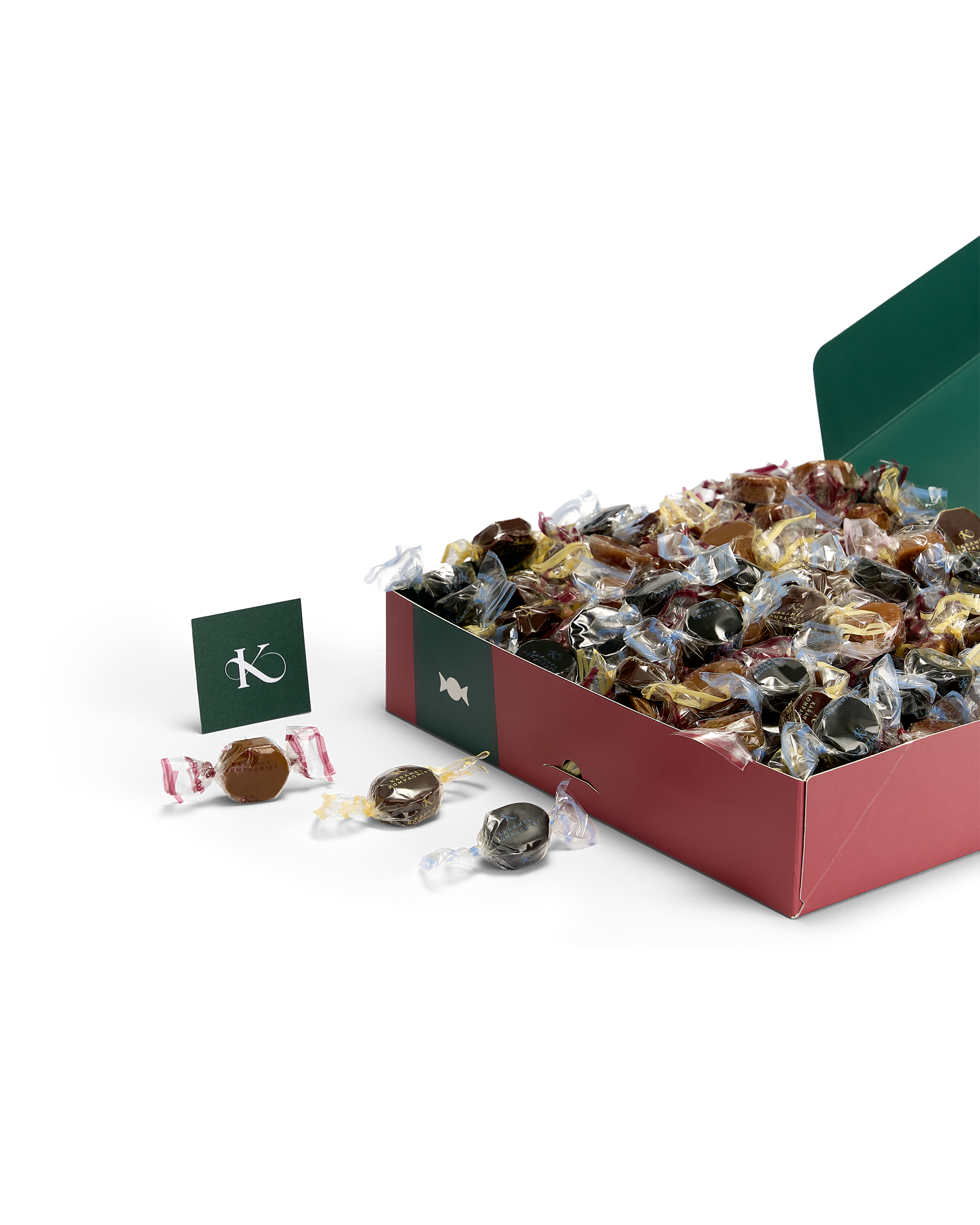 Glucose syrup, condensed milk, chocolate - minimum 58% cocoa solids (cocoa mass, sugar, cocoa butter, soy lecithin, vanilla extract), sugar, water, hydrogenated vegetable fat (palm kernel), emulsifier (mono- and diglycerides), salt, aroma, color: vegetable charcoal. May contain traces of sesame seeds, peanuts, nuts.