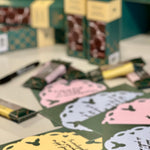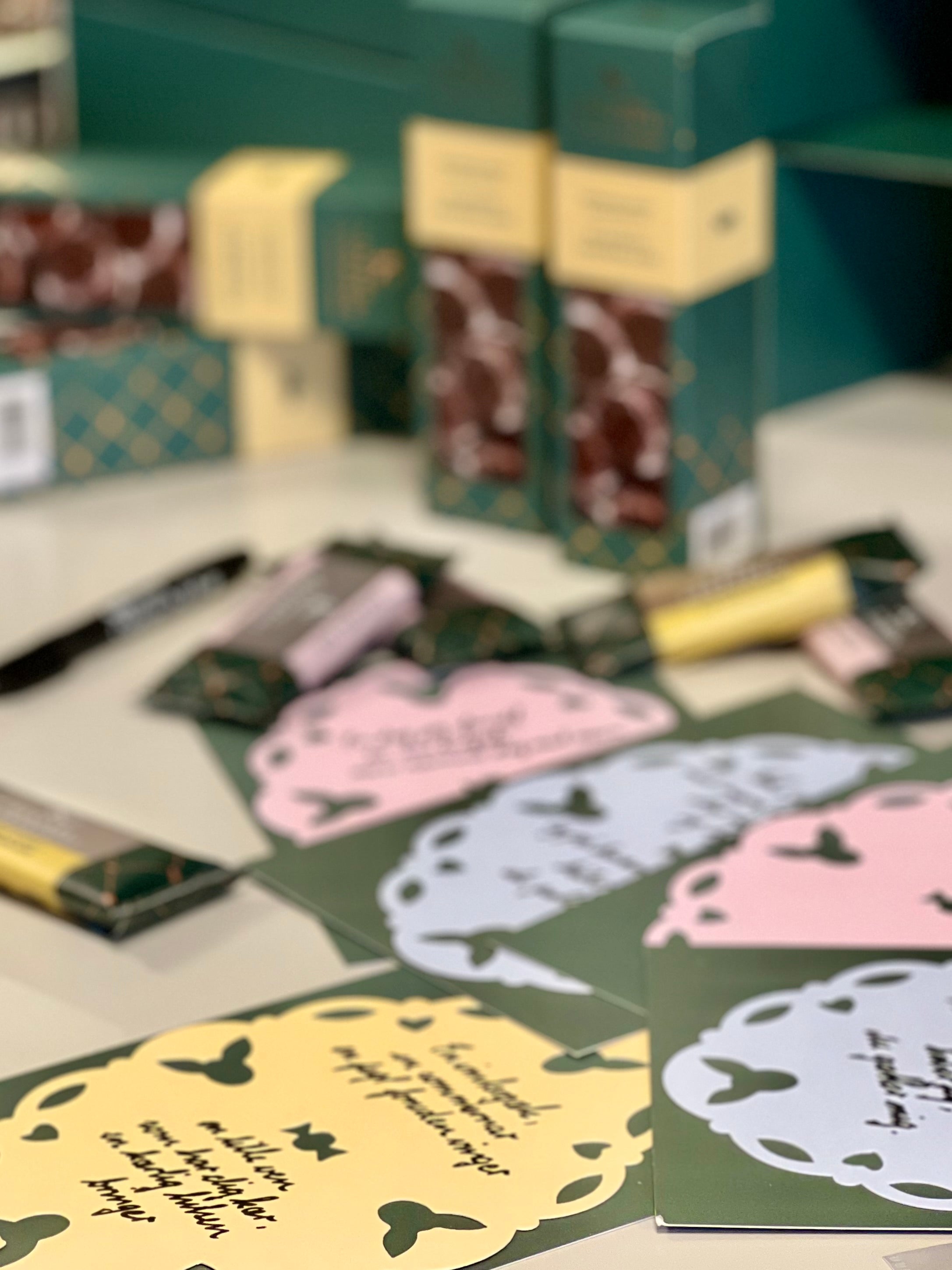 Et hyggeligt blåt gækkebrev til påsken. En fin lille hilsen, der gør det endnu sjovere at give karameller.