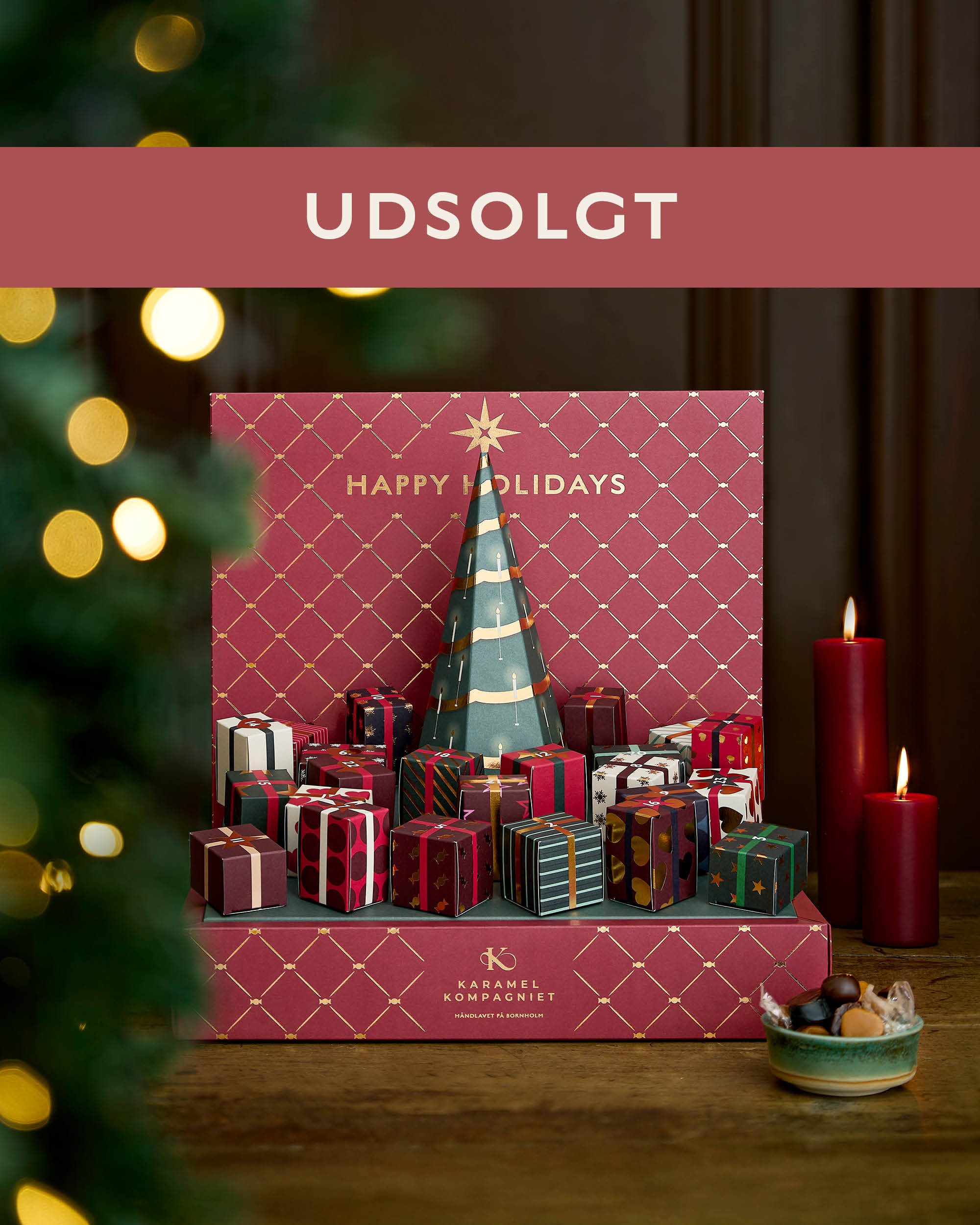 Hver dag i december kan du glæde dig til to delikate, håndlavede karameller, ledsaget af et stemningsfuldt julerim skrevet af Knud Romer. Versene bringer julestemningen helt ind under huden og gør ventetiden til noget særligt.